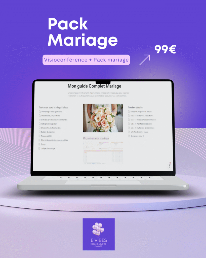Simplifiez votre organisation et vivez votre préparation avec plaisir grâce au Pack E Vibes, une solution complète à 99 € TTC.